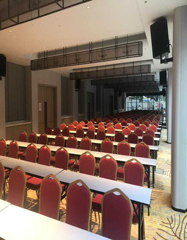 根據(jù)現(xiàn)場聲場環(huán)璄,音箱布局采用分散式,確保場所的均勻度、現(xiàn)場效果語言清淅、聲壓余量足、無失真。
